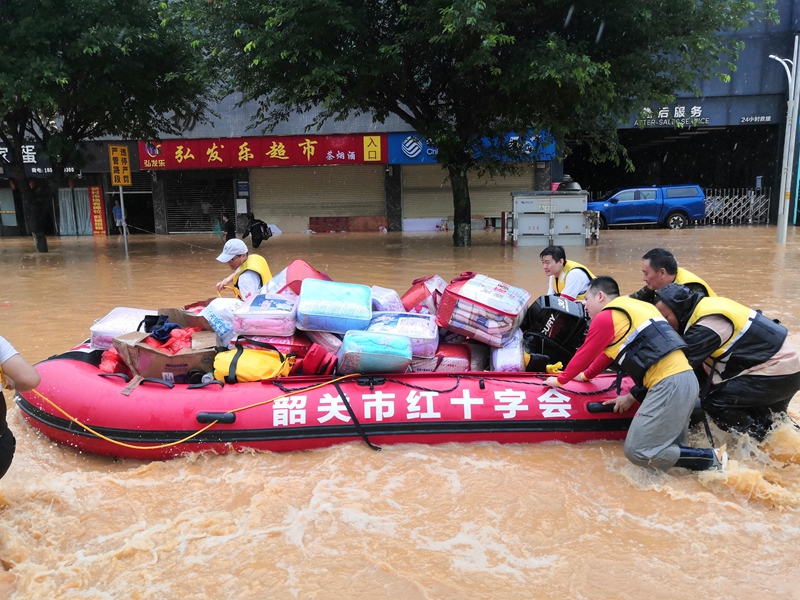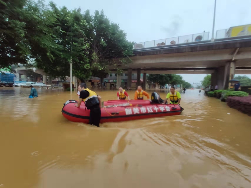 —韶关市红十字水上应急救援队奋战在抗洪救援一线