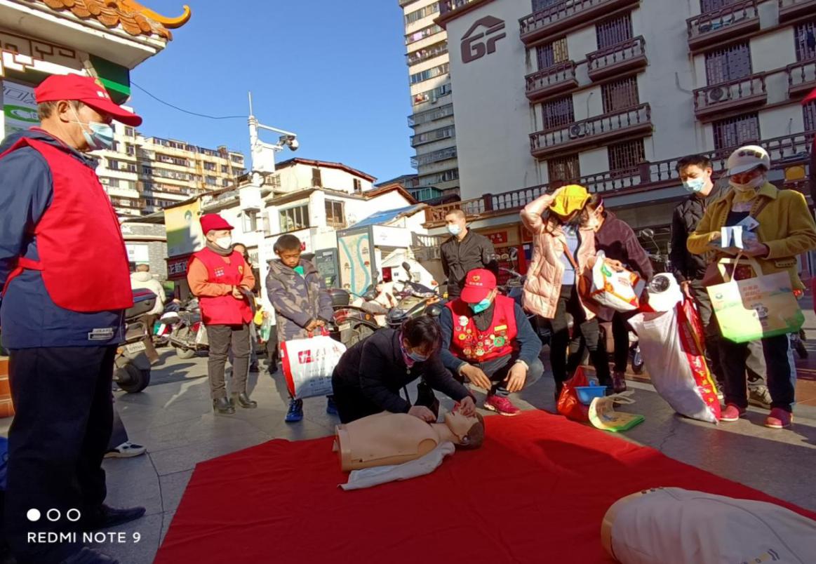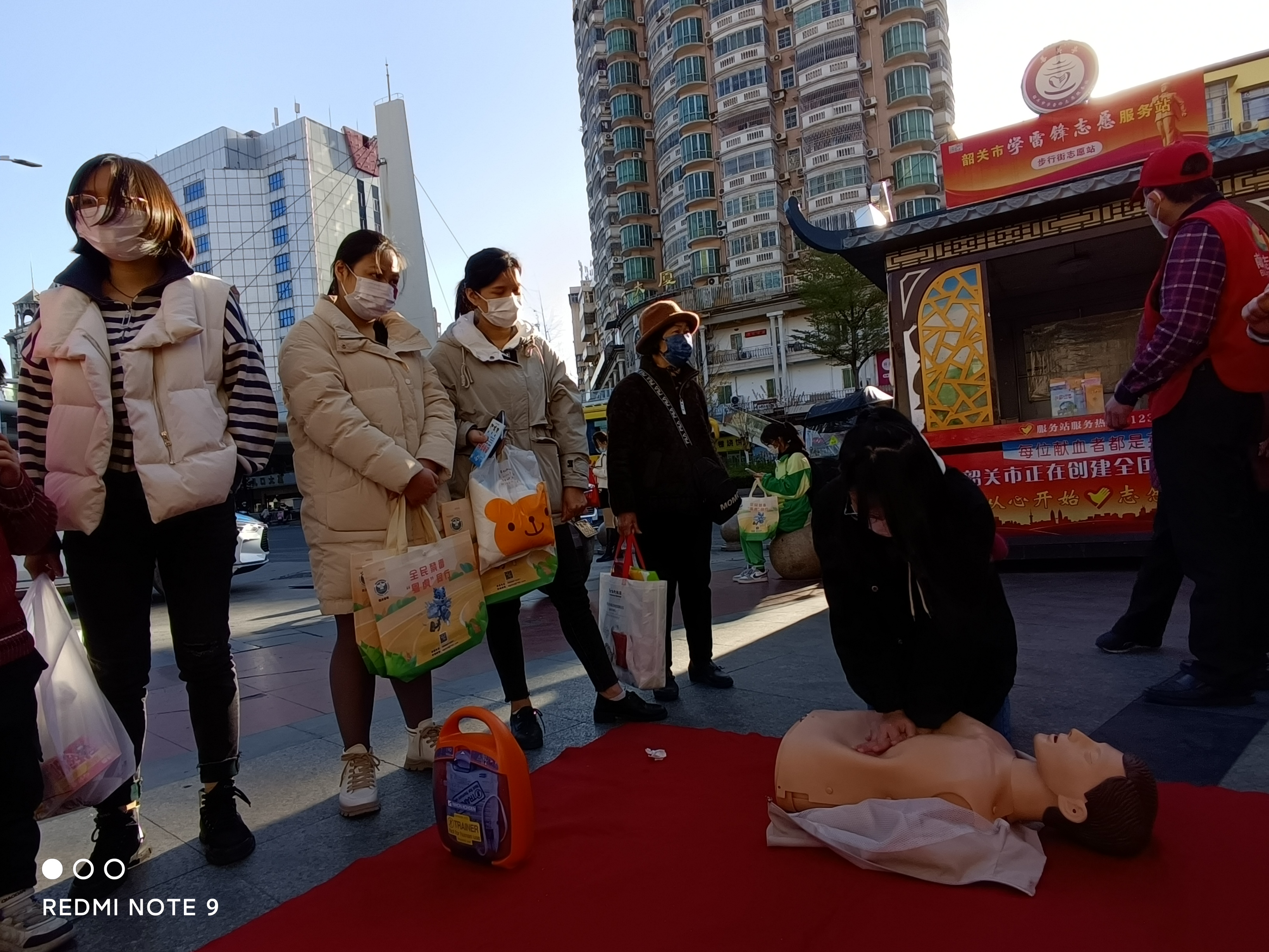 活动现场,韶关市红十字会专职副会长冯珍素带头参与应急救护示范演练,工作人员向过往群众及附近居民发放《不让毒品进我家》、《珍爱生命 远离毒品》等毒品预防手册和《中华人民共和国红十字会法》、《急救手册》《造血干细胞捐献知识》等各种宣传资料。市红十字会无偿献血志愿者利用“模拟人”向现场群众演示心脏骤停后进行心肺复苏的操作步骤,讲解胸外按压的部位、频率以及人工呼吸的要点,手把手指导群众操作要领与技巧。活动吸引了众多市民围观学习,取得了良好效果。
