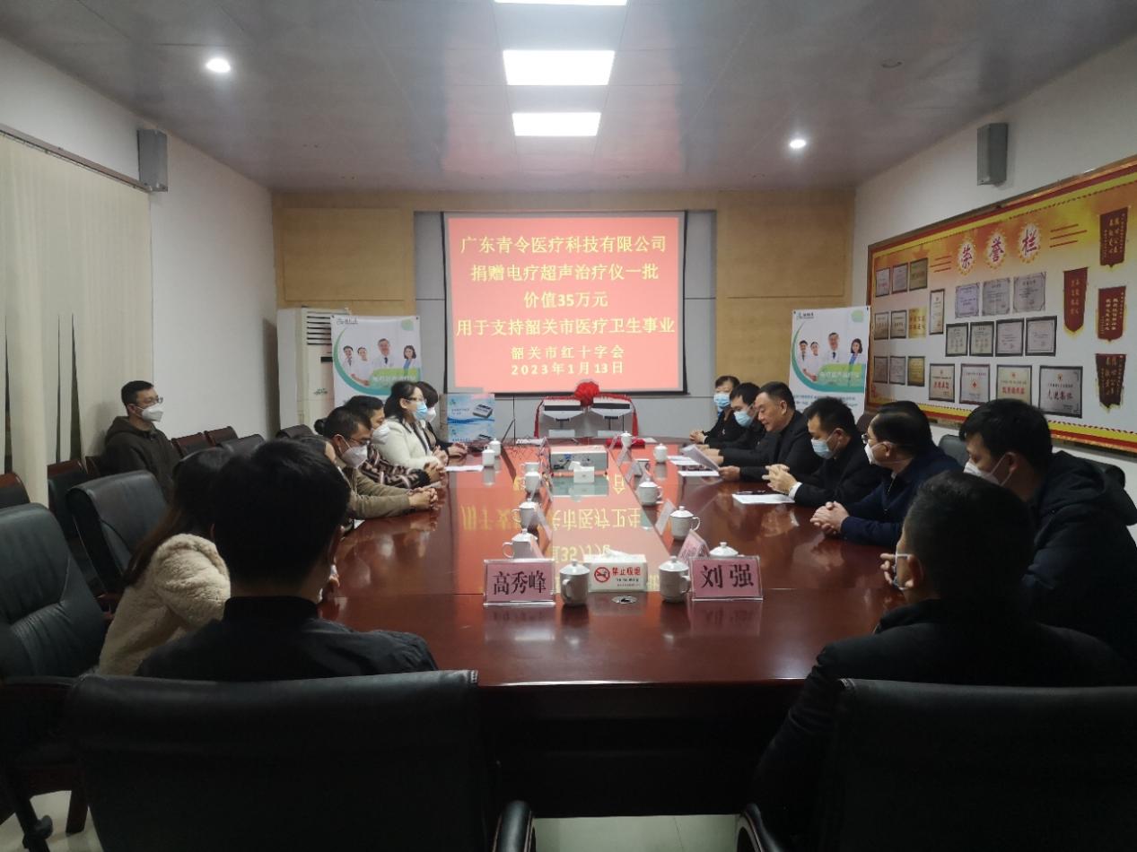2023年1月13日上午,广东青令医疗科技有限公司通过韶关市红十字会向我市50家基层医疗卫生机构捐赠价值35万元的电疗超声治疗仪一批,积极支持我市医疗卫生事业发展 ,提升基层医疗卫生服务水平和助力乡村振兴工作。