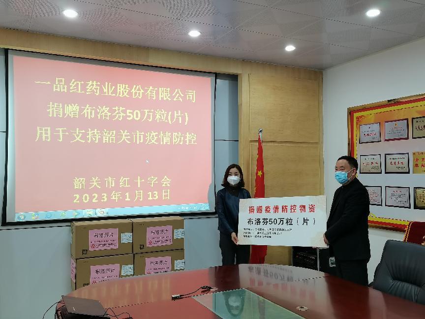 善美如此多娇,留粤北情深民意高。赞企业担当,不输风采;家国情怀,各领风骚!2023年1月13日下午,一品红药业股份有限公司通过市红十字会向我市捐赠退热药品布洛芬片50万粒,并在市红十字会举行捐赠仪式,用实际行动为抗击疫情贡献力量。