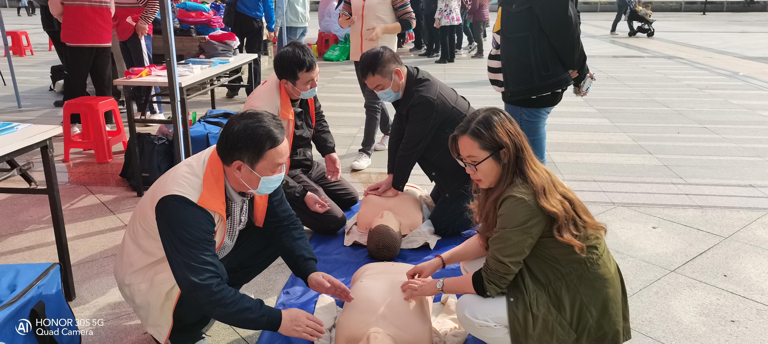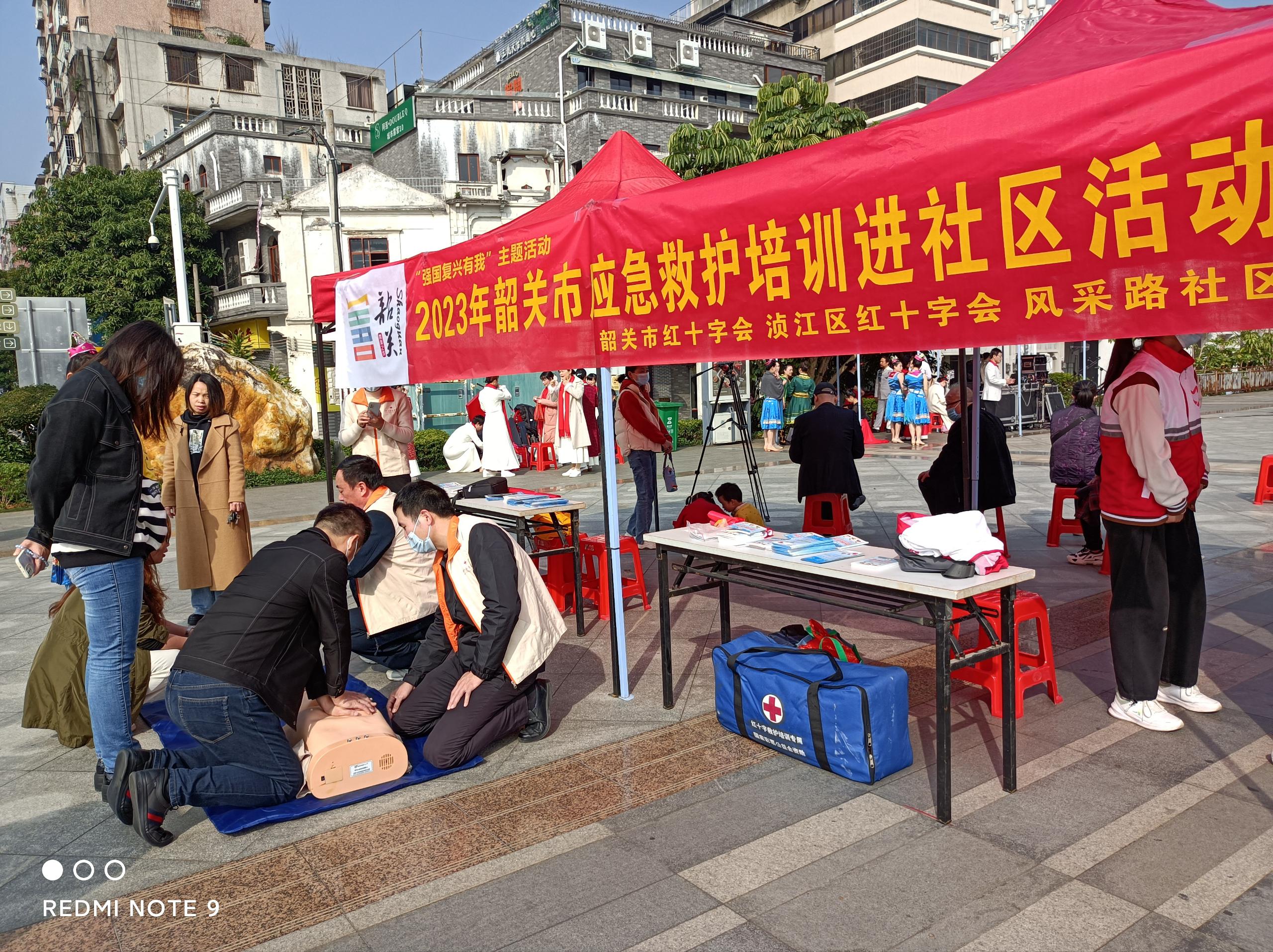 2023年2月18日,韶关市红十字会与浈江区红十字会在浈江区百年东街婚庆广场开展应急救护培训,向社区居民普及应急救护知识,传授应急救护技能。市红十字会专职副会长冯珍素、三级调研员赵远芳等同志参加活动。
