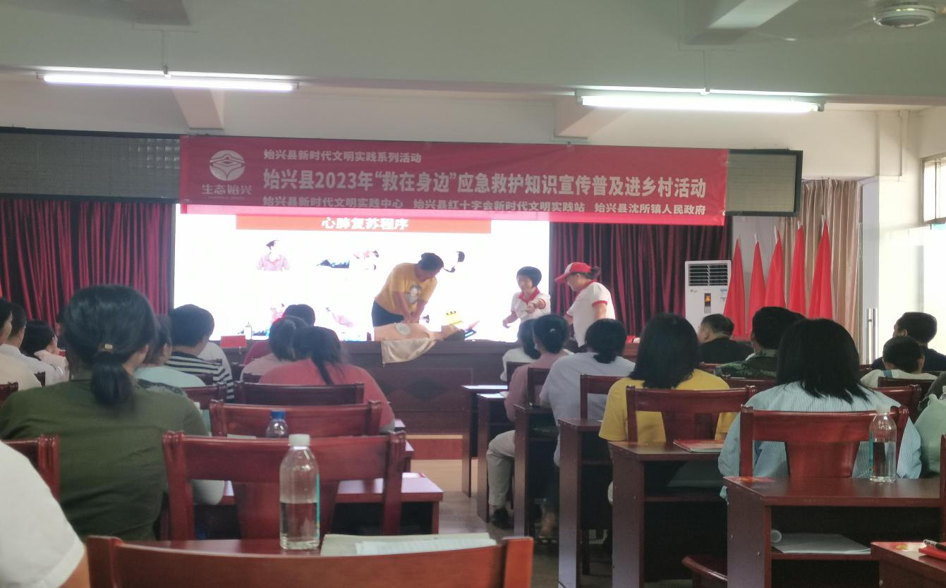 为提升基层干部急救意识和急救水平,提高应急处置能力和应变能力,2023年6月7日,始兴县红十字会在沈所镇政府开展“救在身边”——应急救护知识宣传普及进乡村活动,沈所镇政府及村(社区)70余名工作人员参加。