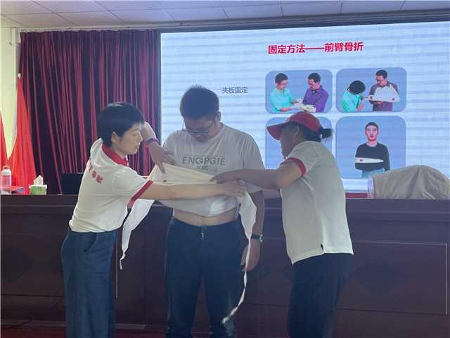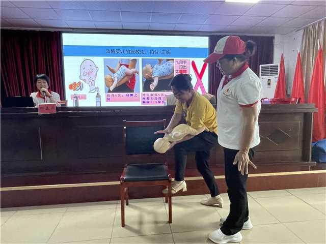 此次活动分为理论教学和实践操作,以意外伤害、心肺复苏、创伤救护为主。红十字会培训师资邓春燕结合生活中最易发生的意外伤害案例,深入浅出地讲解了日常意外伤害和常见急症的处理方法。并现场演示气道异物梗阻解除、创伤救护四项技术、心肺复苏术和AED(自动体外除颤仪)的使用等紧急救护技能,进一步让镇村干部深刻认识并掌握了应急救护操作流程。