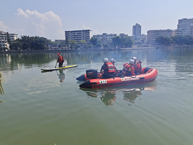 此次培训,特邀惠州市红十字水上专业救援教练杨志军作为师资进行指导。杨教官通过现场讲解和实操等形式,为参训队员详细讲解了队列训练、400米体能游、冲锋舟操作、抛绳救生、救生四式、救生拖带、桨板救生等科目训练,让参训队员进一步掌握水上救援的专业知识和救援方式。