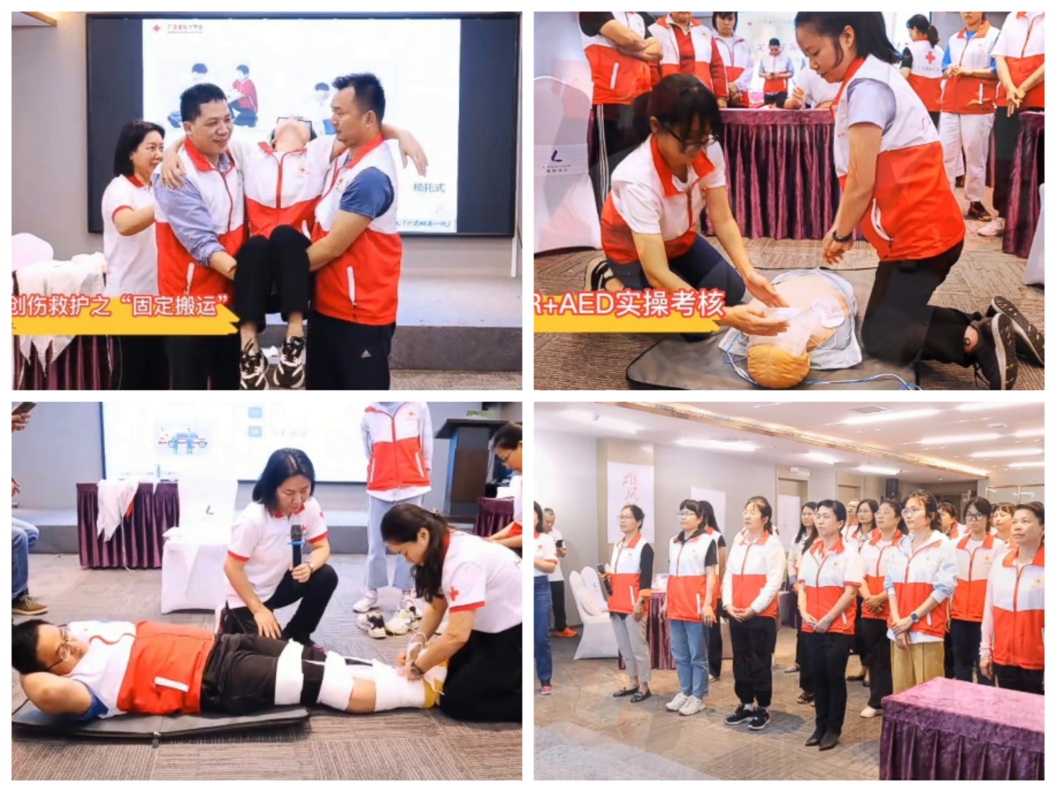 本次培训从2023年5月15日开始,为期5天,共48个课时。课程安排满满当当,既有救护概论、红十字运动基本知识等理论培训内容,也有心肺复苏、创伤救护、常见急症的实践操作等。参训学员们表示,本次培训非常务实有意义,大家既掌握了急救理论也学会了急救实操,学有所成、学有所获。