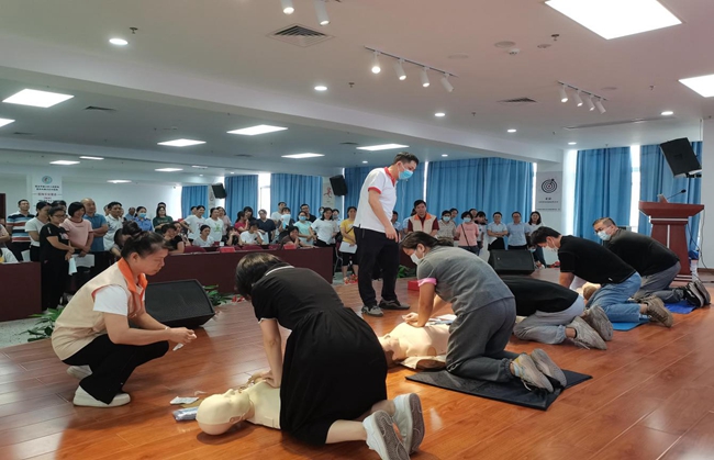 为普及应急救护知识和操作技能,提升广大市民的应急救护能力,2023年8月22日和25日,2023年广东省红十字会“关爱生命·救在身边”应急救护培训项目走进曲江,来自马坝镇各村(居)委、社区的干部职工及中小学校校医、体育老师等共160多人分两期参加了救护员培训。