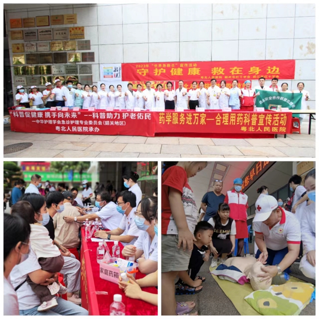 9月9日上午,韶关市红十字会联合粤北人民医院、武江区红十字会、摩尔城商城、芙蓉北社区居委和市红十字无偿献血志愿者服务队、水上应急救援志愿者服务队的同志们一道,分别在粤北人民医院和摩尔城商城开展义诊、心肺复苏术、海姆立克急救法和应急救护知识宣传等活动,活动合计吸引了近300多人参加,发放宣传资料近千份。